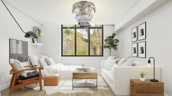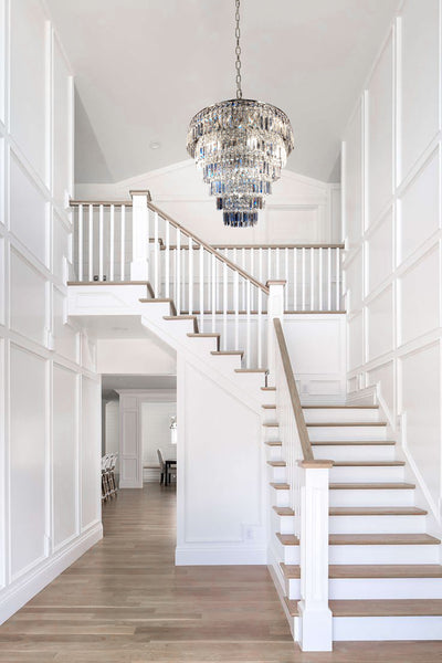 Defined by graceful tiers and sculpted crystal geometry, this modern traditional chandelier captures a balance of structure and shimmer. The polished chrome finish amplifies its luminosity, while the precision-cut 30% lead crystals reflect light with depth and clarity. Perfectly scaled for dining rooms, living areas, bedrooms, and entryways, it delivers a refined presence that complements both classic and contemporary interiors.