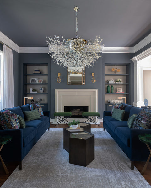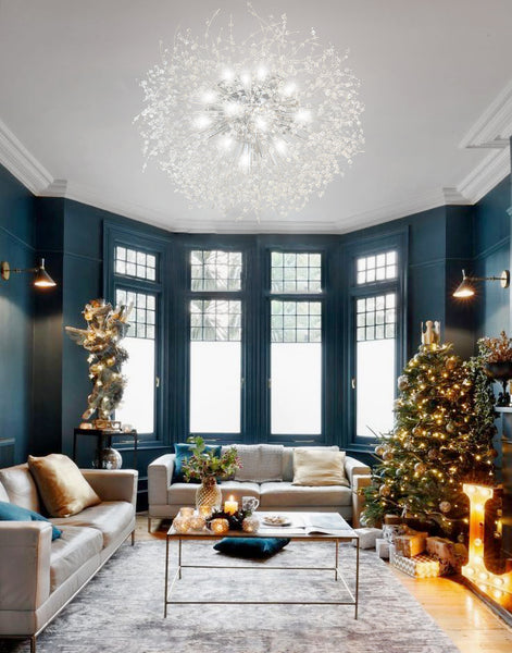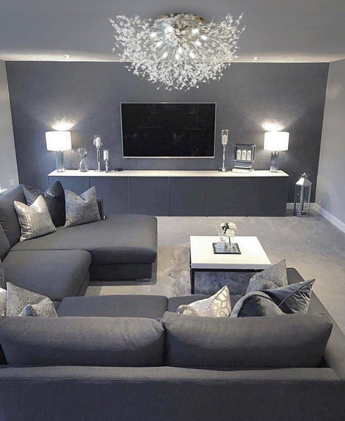 This starburst flush mount chandelier embodies architectural balance and sculptural brilliance. Feature each hand assembled crystal branch reflects light in a cascading sparkle, adding modern warmth and timeless luxury to any interior. Its compact yet striking form creates a luminous centerpiece ideal for low or high living rooms, bedroom, closet, office and elegant kitchens, blending sophistication with contemporary design.