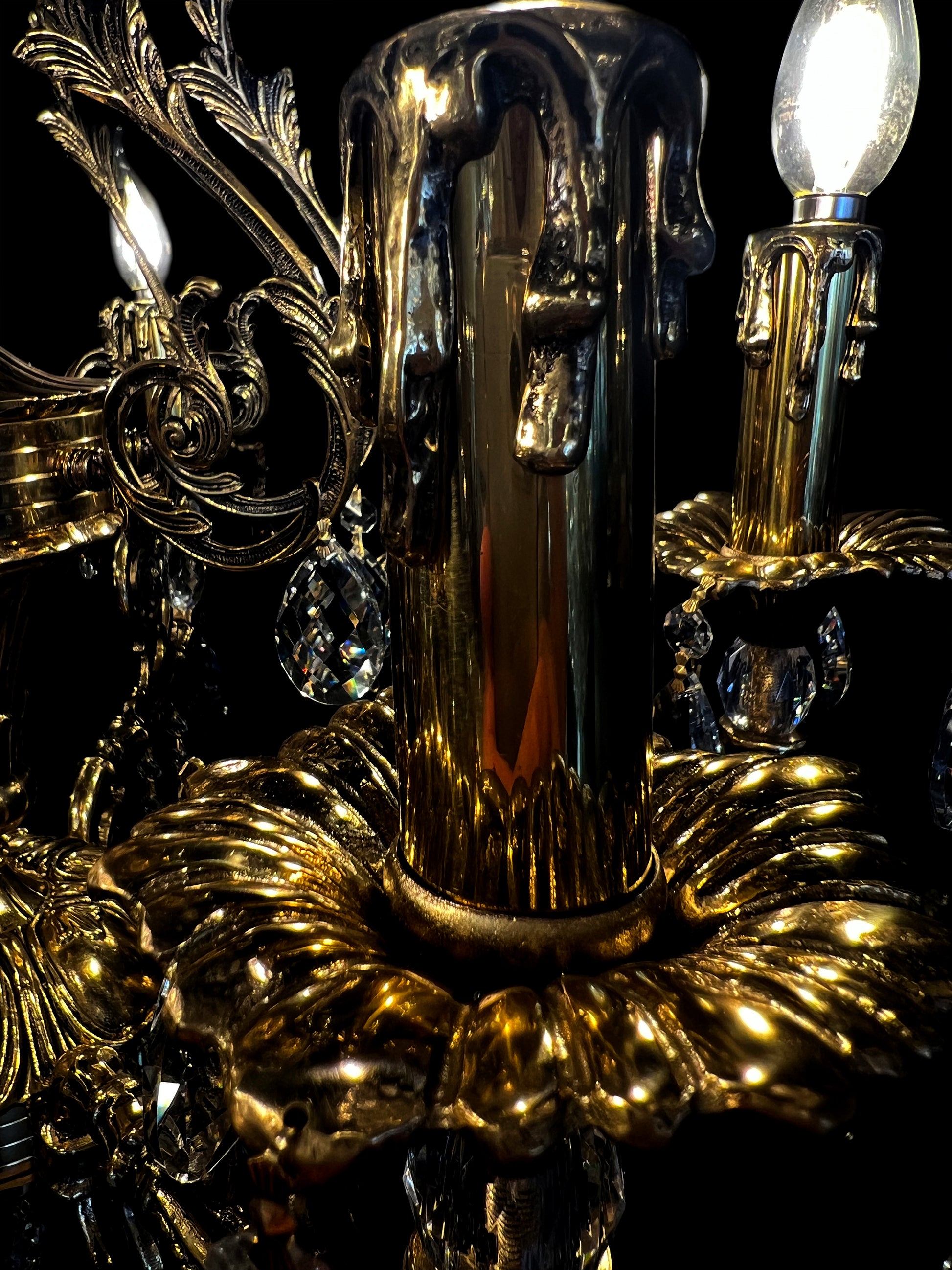 Handcrafted this exquisite brass crystal chandelier embodies the essence of timeless European luxury. Expertly forged from premium solid brass and adorned with precision-cut crystal drops, it creates a luminous interplay of sparkle and warmth. The ornate crown and graceful arms reflect traditional Italian artistry. Perfect for dining rooms, foyers and living spaces seeking refined sophistication.