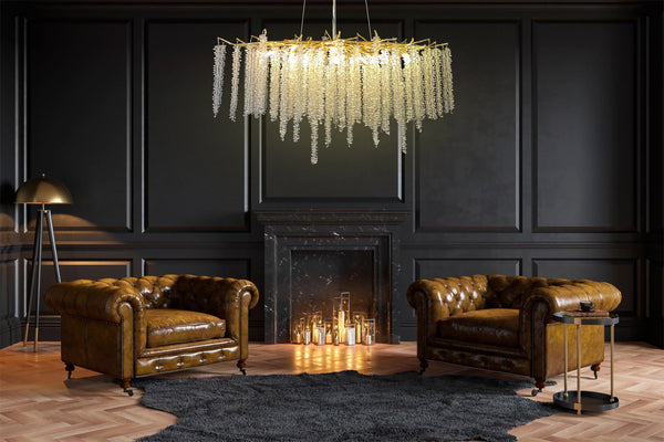 Defined by cascading crystal strands and a luminous gold finish, this linear chandelier embodies refined elegance and sculptural beauty. Perfect above dining tables, kitchen islands, bar or living rooms, it creates a sophisticated focal point for modern interiors.