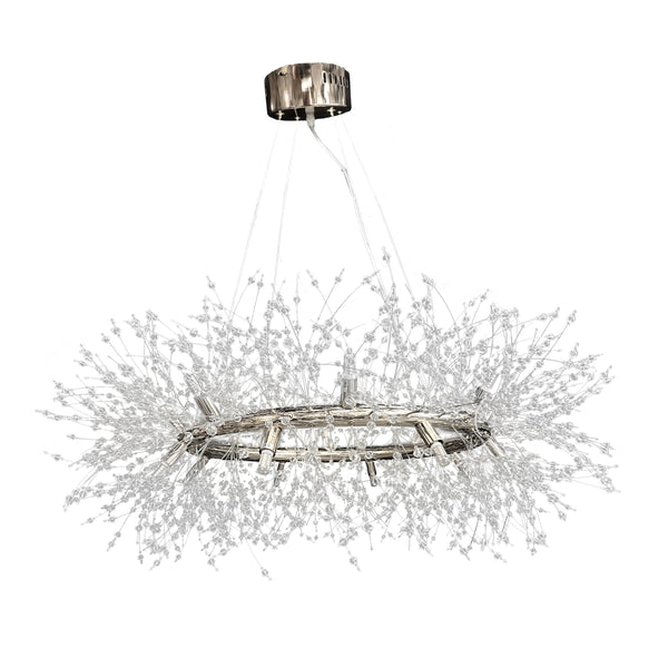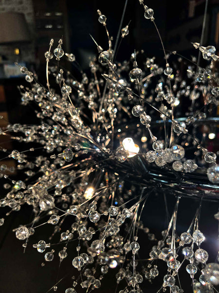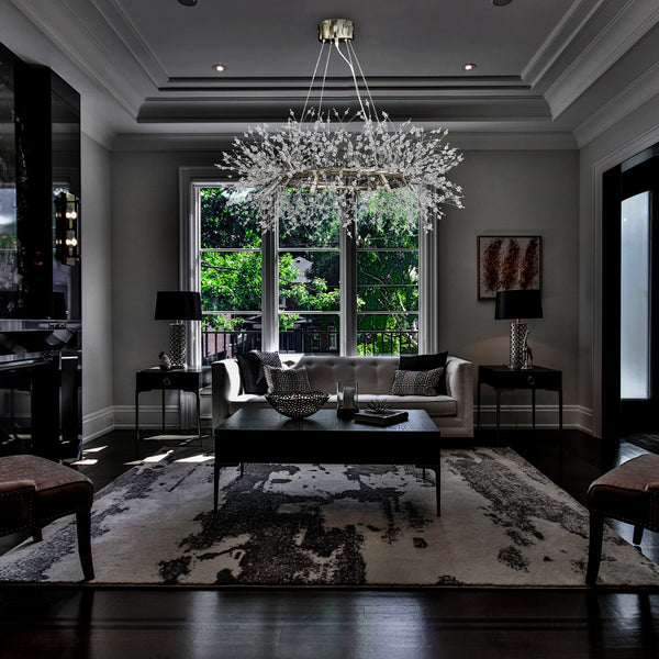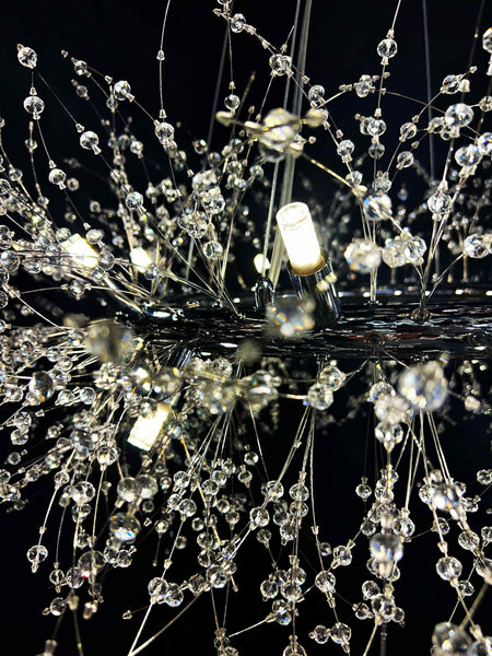 This modern starburst chandelier brings sculptural brilliance to refined interiors. feautre a polished chrome finish and precision cut crystal branches, it refracts light beautifully to create a radiant ambiance. Ideal for dining rooms, living areas, bedrooms, and entryways, it serves as a statement piece of modern elegance.
