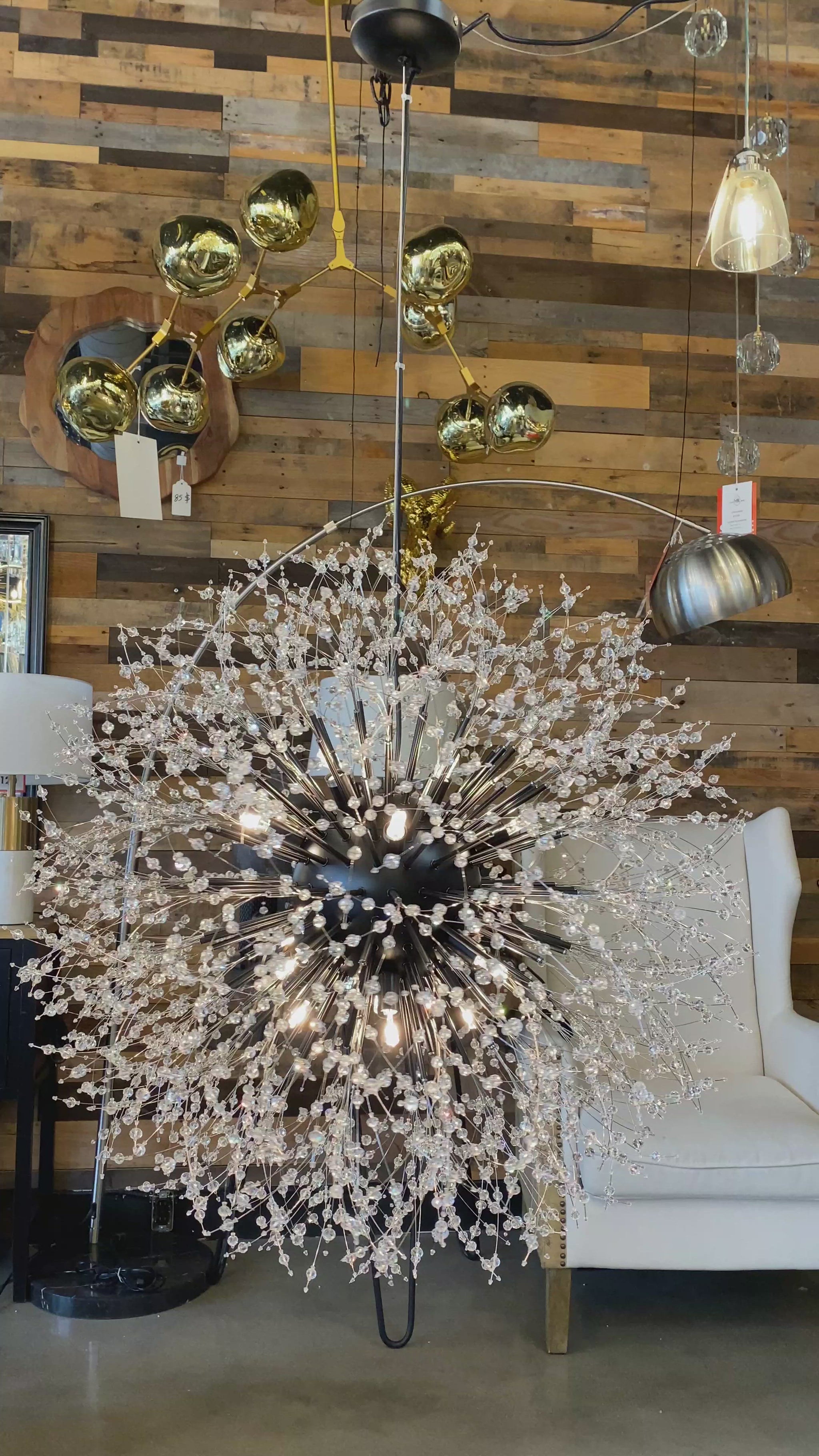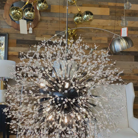 This luxurious starburst chandelier captures modern elegance with its sculptural crystal design and radiant black finish. Feature sparkling crystal branches, it creates a luminous focal point that enhances dining rooms, foyers, and contemporary living spaces with refined sophistication.