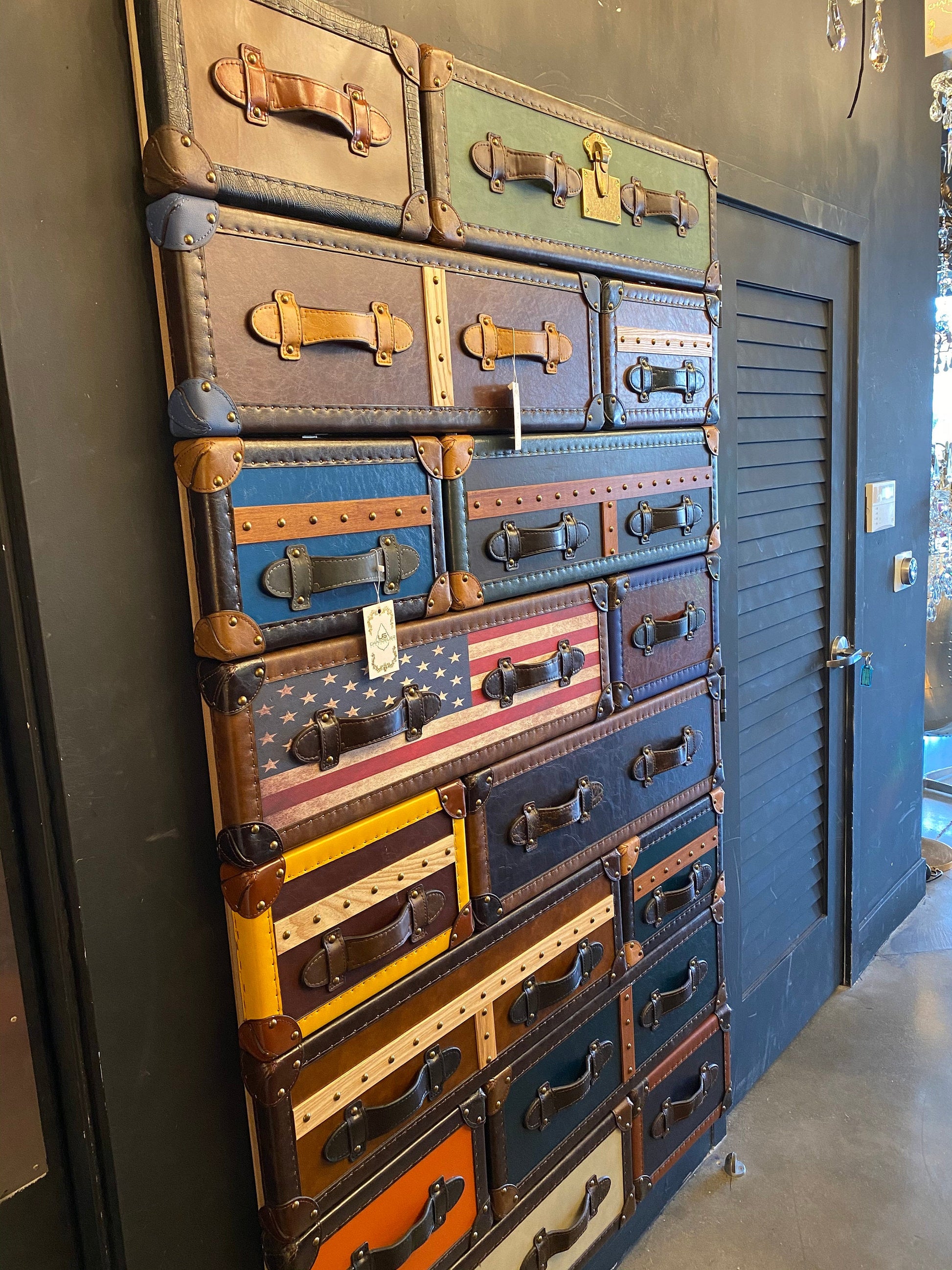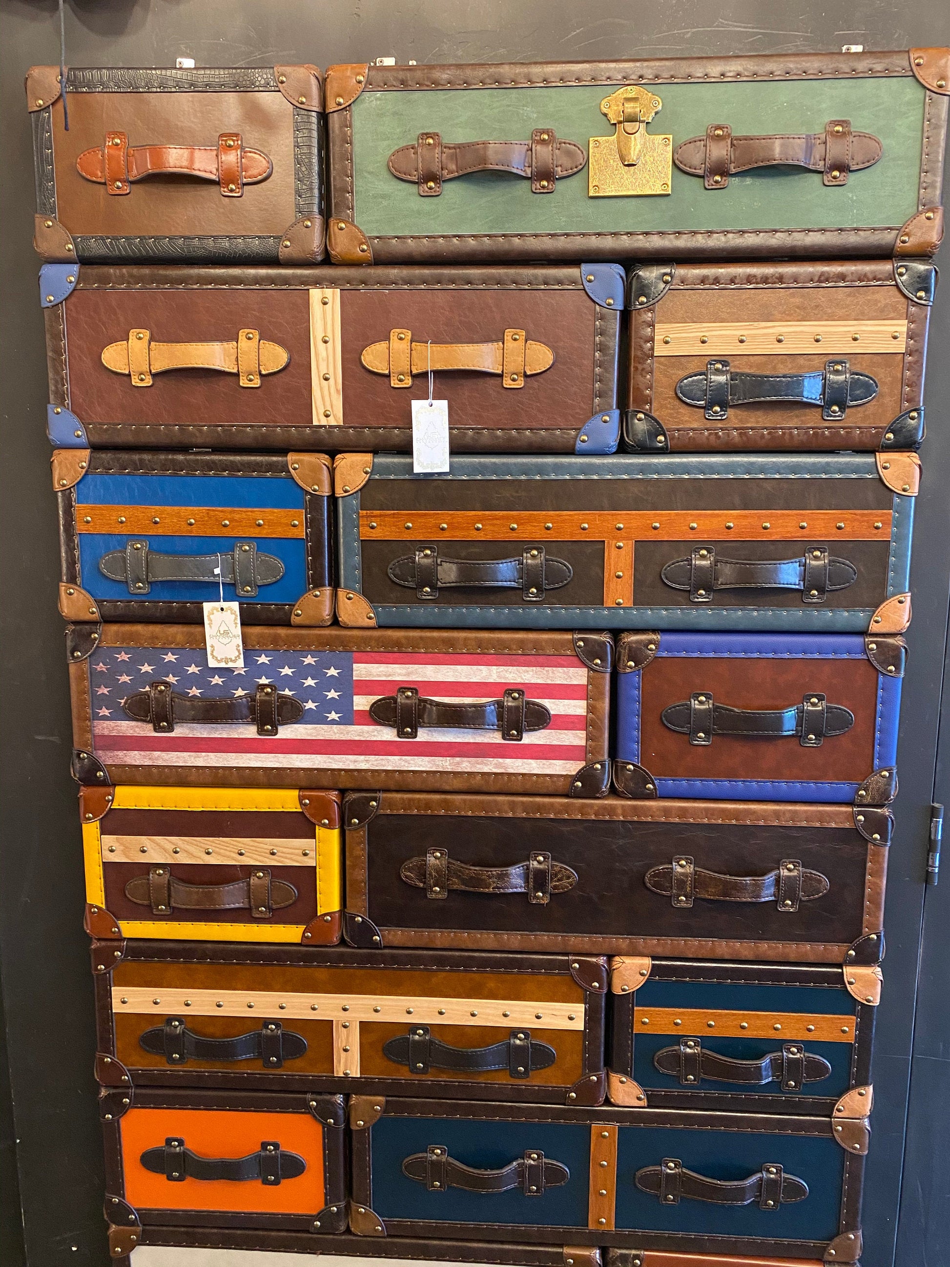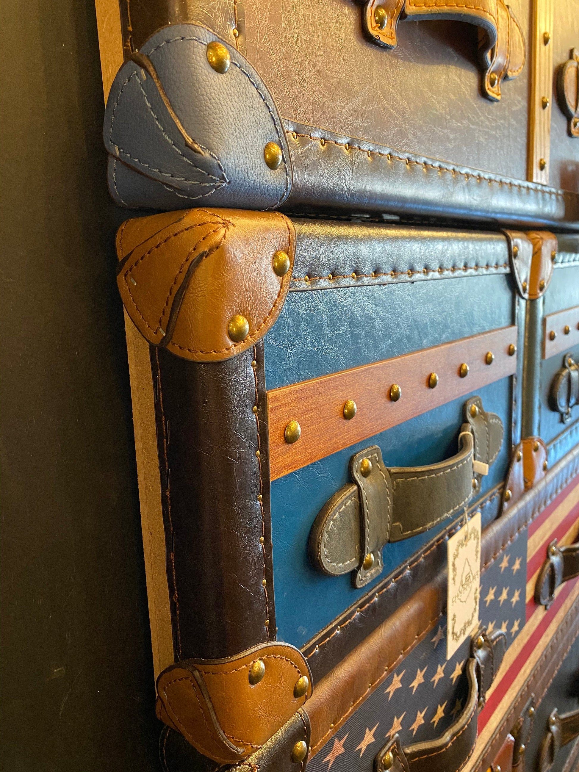 Enhance your space with this exclusive handmade wall decoration set, featuring one large and one small piece, each crafted from high-quality wood, faux leather, and metal details. Inspired by classic American design, these vintage-style pieces showcase unique textures, nailhead accents, and leather handles, with select variations including a decorative gold latch. Each set comes in a different color combination, making every purchase one-of-a-kind.
